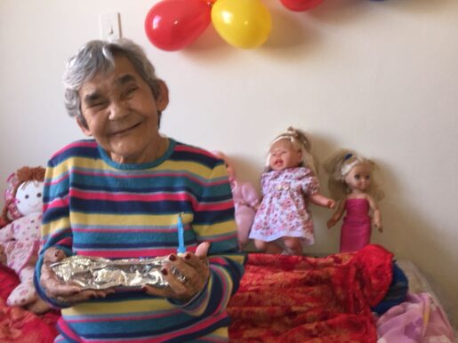 Idosa comemora aniversário de suas bonecas com festa
